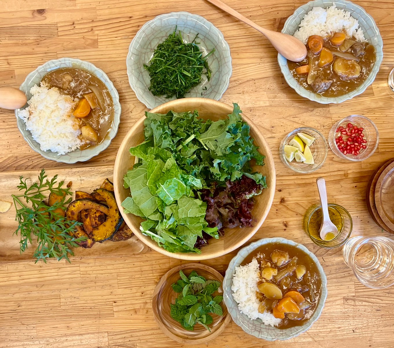 1日目は、収穫体験やコンポストセミナー、収穫した野菜を使いながらカレーを皆で作って食べました。(ニンジンの葉っぱをこんなに食べたことはなかった・・・笑)そして素敵なホテルでは、「国生み」のお話を聴いたり、ワークショップをして熱気あふれる懇親会にて終了!